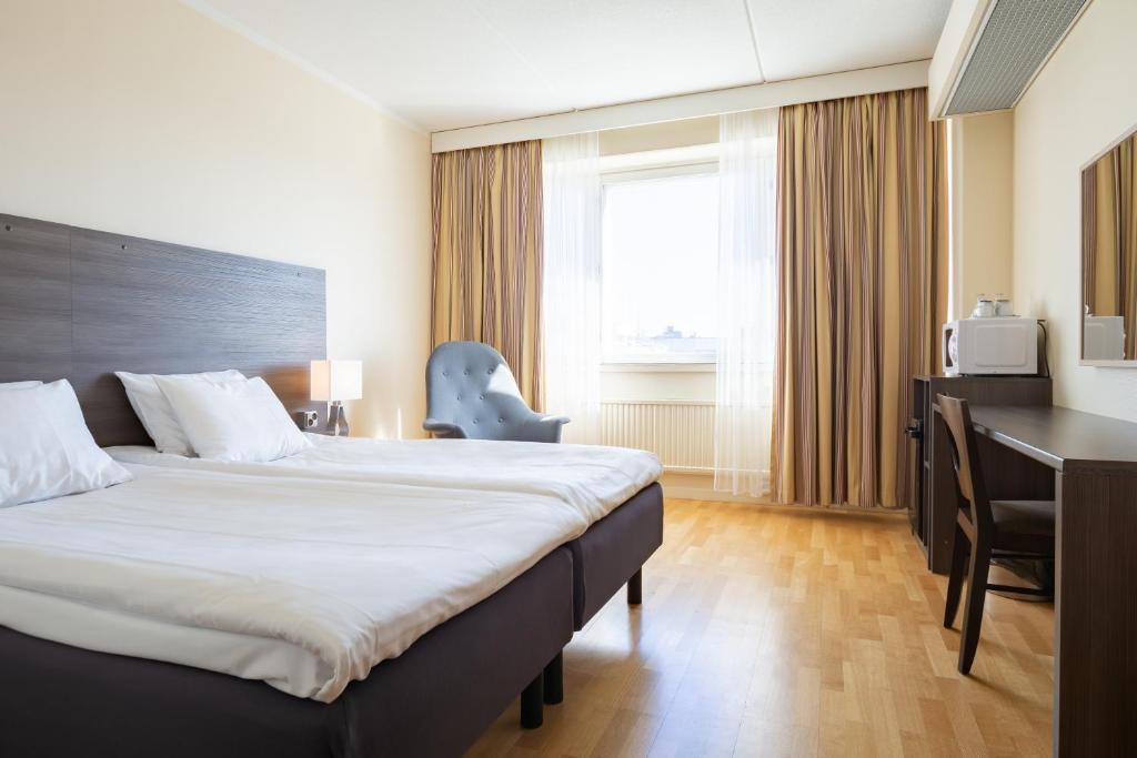 "Torgetin toimistolla erittäin hyvä palvelu, kiitos! Yövyin kuudennessa kerroksessa, kaupunkinäkymä torille, tykkäsin. Huone siisti, tilavan oloinen ja viihtyisä. Jääkaappi, mikro ja vedenkeitin extraa vakka en niitä tarvinnutkaan. Hotellissa erittäin hiljaista, ei melua eikä levottomuutta."