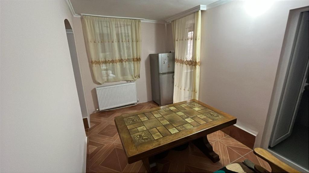 "The apartment is very clean, big and nice! We stayed as a family of 4. Kitchen has everything needed. Good table for a family dinner. Bedrooms have windows, from one room you see beautiful morning's Kazbek, from another room another mountain. Bedsheets are very clean and beds are comfy. Beautiful balcony and yard. Eka, the owner, is very friendly."