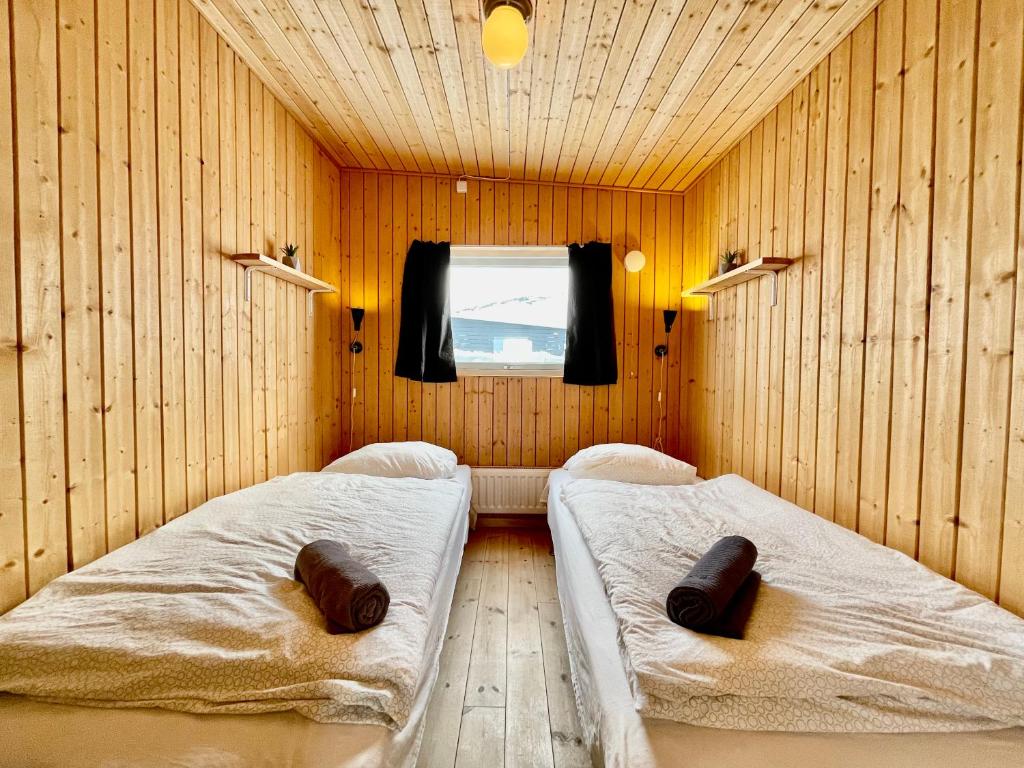 "What a wonderful place! Nice and close to airport. It's a hostel, but really there are 2 separate rooms with 2 beds in a cabin (at least that was how my cabin was. There is a shower toilet room, and a kitchen and seating area with a spectacular view. There is a bar and restaurant on site and they sometimes have bands playing on an evening. It is perhaps a 30 minute walk into Nuuk or you can get the bus which is pretty frequent about a 5 min walk away."