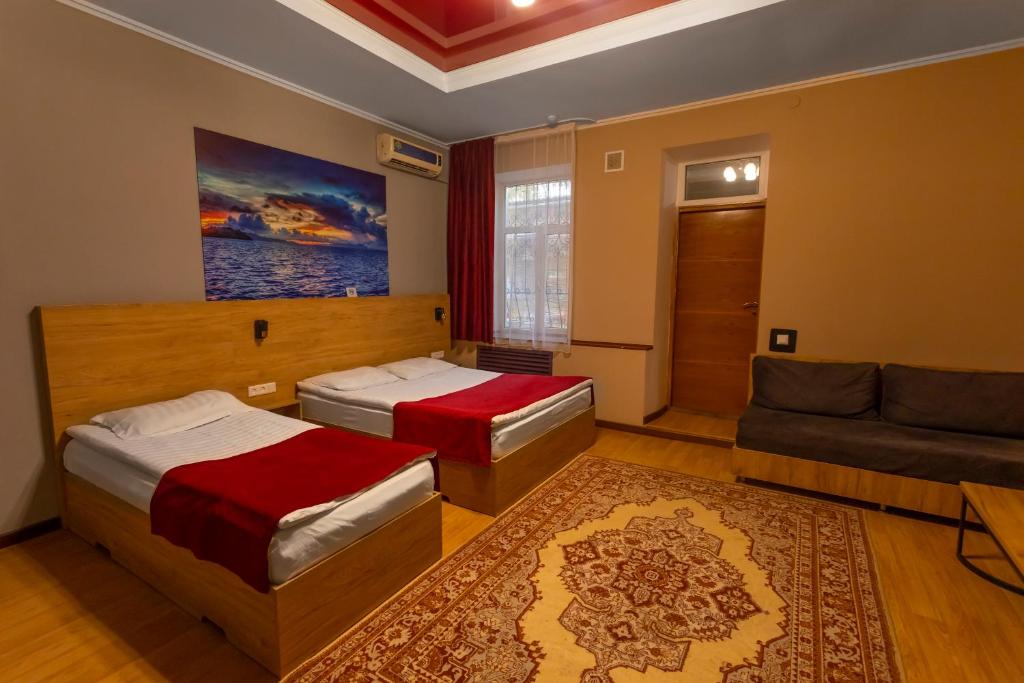 "Je to nádherný prostor a ač na rušné ulici, přesto je v něm možné relaxovat a odpočívat ve spoustě zákoutí, které tam jsou vytvořeny pro hosty. Je zde možnost si jídlo uvařit nebo ohřát, využít ledničku. Personál velice ochotný, pokoje čisté, útulné, vše dostačující. Jako bonus je naproti přes cestu Osh bazar, kde jsme si vše potřebné nakoupili. Ač jsme přiletěli dříve, než byly pokoje nachystány, mohli jsme strávit uvnitř několik hodin a odpočinout si nebo je možné využít úschovu zavazadel a jít do města."