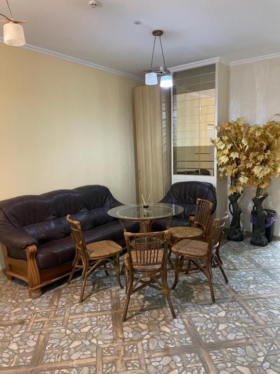 "The location is very convenient, close to the road. There is a parking outside and inside. There are 2 common bathrooms on the floor (for women and men) but very clean and comfortable. We had a spacious apartment for 4 people, there was AC (works great). There is a bar on the first floor where you can drink a cup of tea or a glass of bear. There was quiet and calm. Highly recommend!"