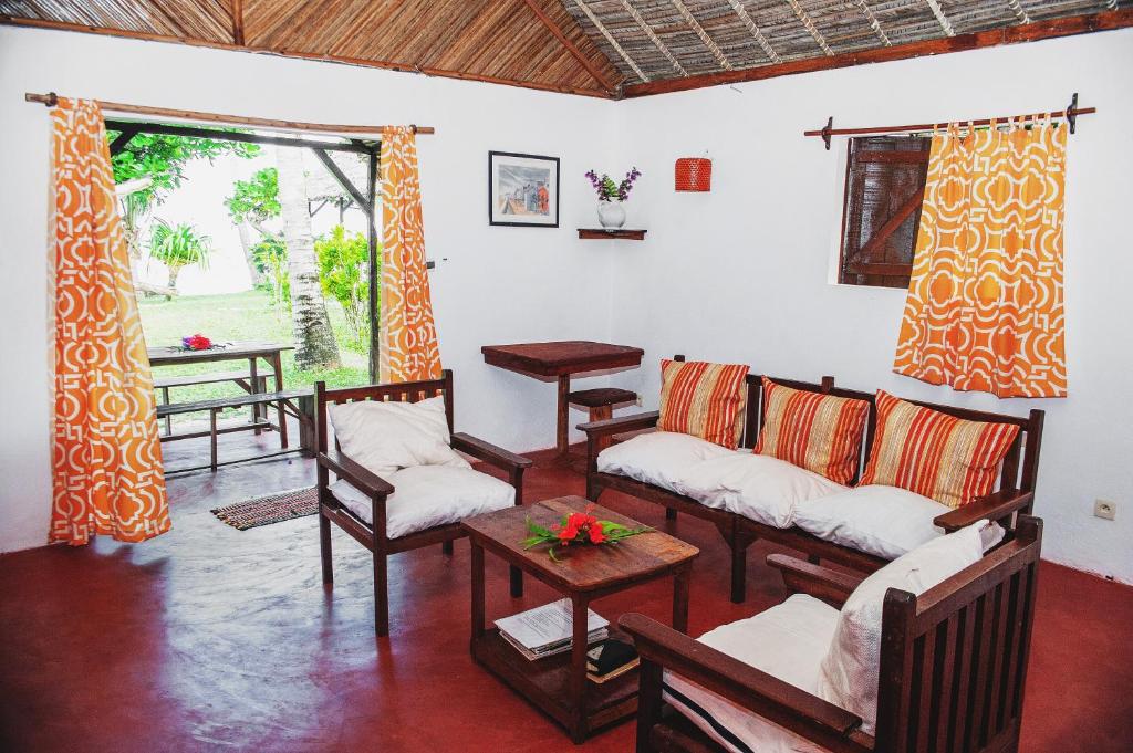 "Tout d’abord l’endroit est fabuleux. Des bungalows de différentes talles disposées dans un jardin très bien entretenu avec beaucoup d’arbres et de plantes à fleurs diverses, à quelques mètres d’un lagon paisible pratiquement sans vagues car protégé par une barrière de corail . Il est possible de partir en excursion en pirogue à moteur depuis la plage juste devant votre bungalow . Existence d’un restaurant où Ernest vous fera de très bons repas . Adelphe la responsable, se fendra en 4 pour trouver des solutions à (presque) toutes vos demandes . Service de chambre impeccable. Patron (presque toujours) sympa . Une équipe formidable avec laquelle vous vous sentirez en famille, Souvenir de moments conviviaux avec fous rires , bières fraîches ou Pastis ou rhum ou plein d’autres choses ."