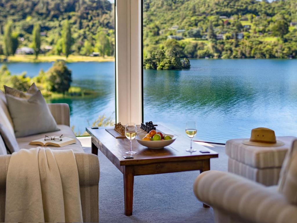 "Stunning location with confident staff who, while being more than courteous and helpful, were also able to stop talking and to allow us to enjoy the Lodge and its amazing menu for each meal. The full moon rising over a nearby headline was an additional and exceptional feature. As the song goes, "Silence is golden" and the Tui's, Fantails and Ruru (Morepork) calls provided a natural symphony for our relaxing stay."