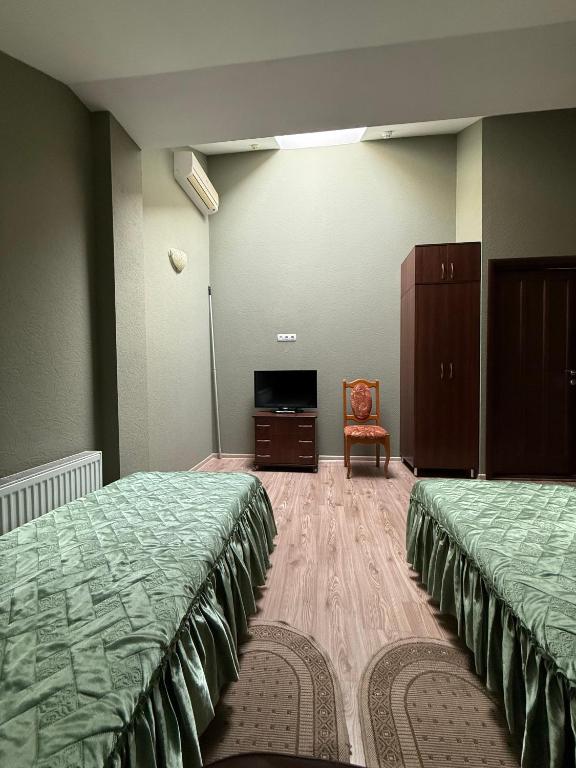 "Поза всяким сумнівом,це найкращий готель міста Радивилів.тому що єдиний.дуже доброзичливий персонал,це важливо))однозначно рекомендую,позаяк в сусідніх містах за таку ж вартість можна хіба отримати номер з спільними вигодами.в номері тепло і багато дерева,мені це подобається дуже.ліжко на другому рівні,і це цікаво,якби не сходи)"
